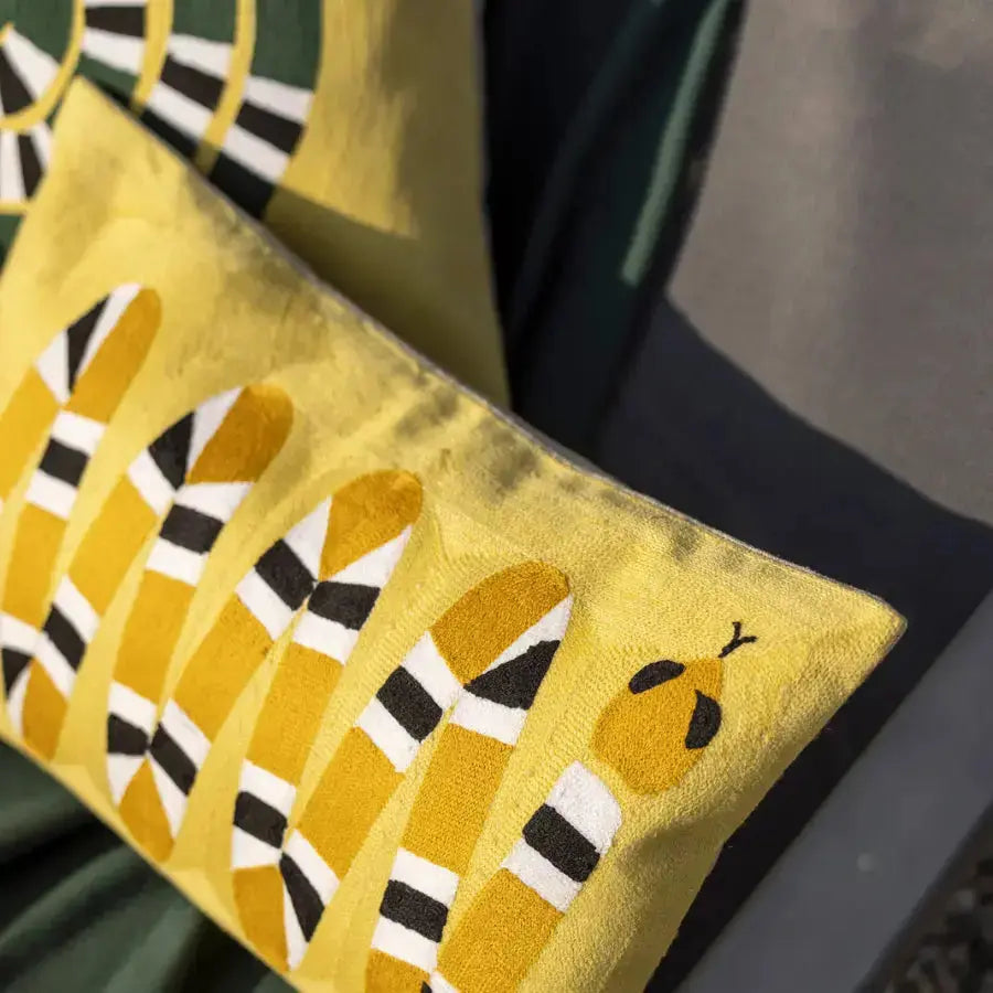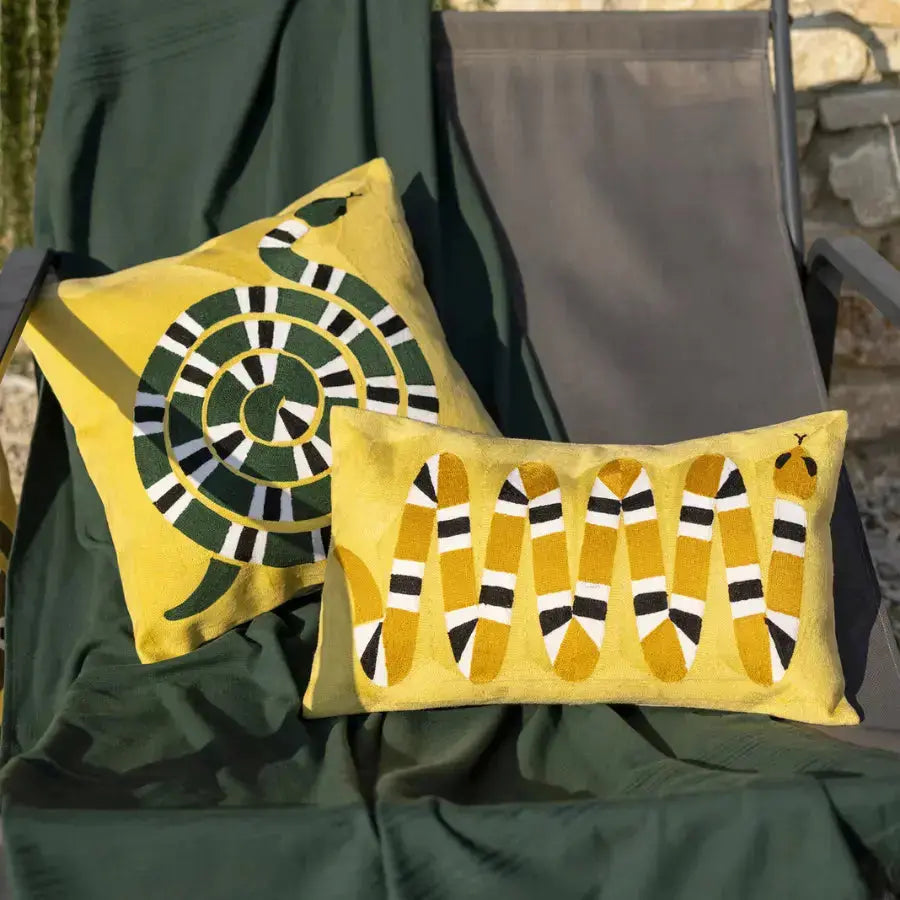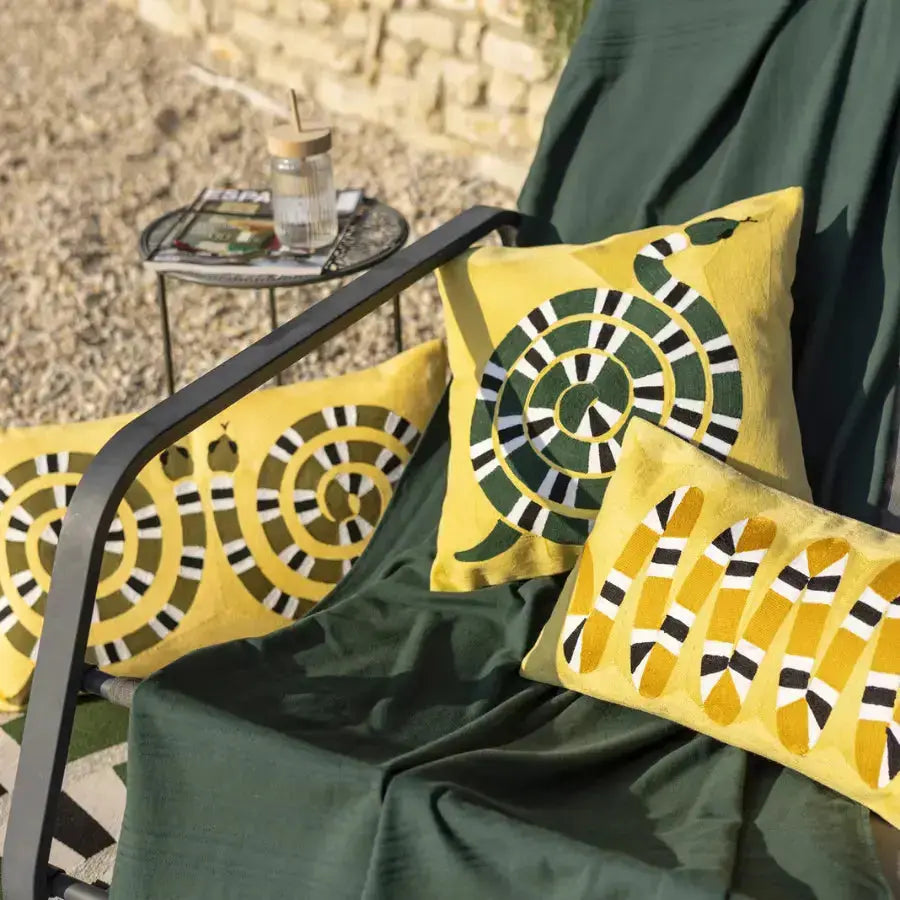 Coussin brodé graphique en coton Yoka Mangue - motif serpent - relief élégant - Vivaraise