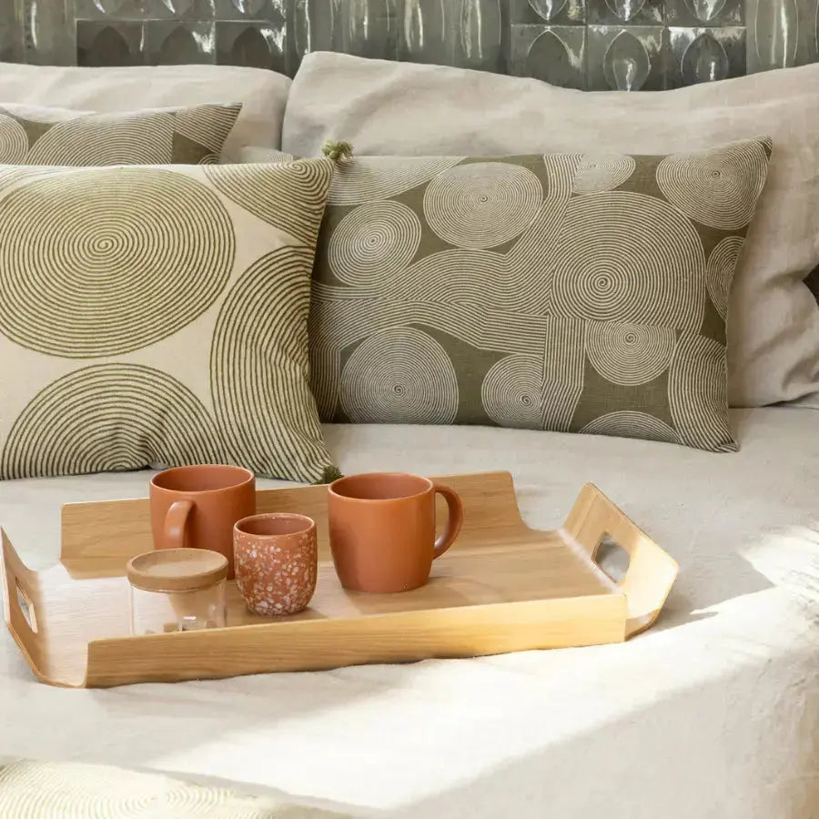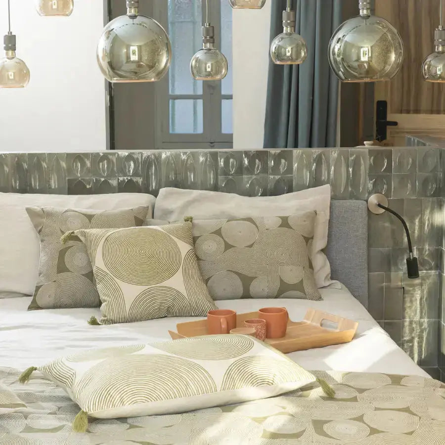 Dès le premier regard, le coussin imprimé en lin Tito Naturel séduit par son motif de lignes concentriques, comme tracées à la main. Ce dessin graphique apporte du rythme et du relief à votre décoration, tout en conservant une grande douceur visuelle.