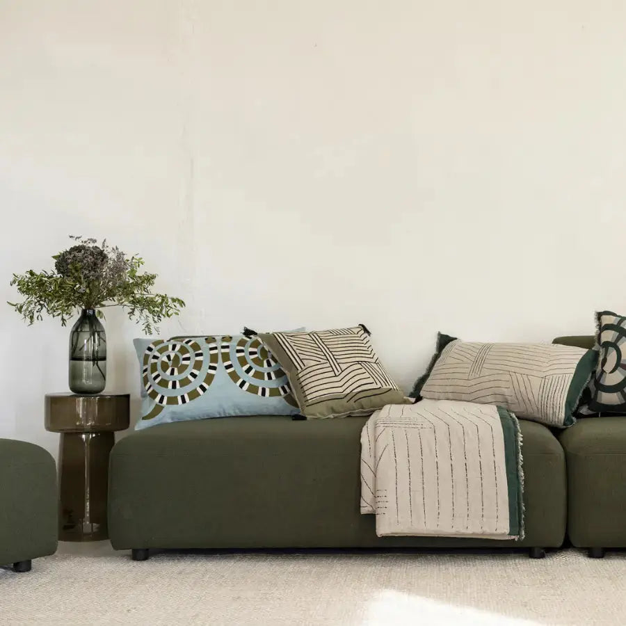 L’édredon en lin graphique Zeff Kori Abysse apporte une touche décorative forte sans jamais alourdir l’espace. Son motif de lignes irrégulières façon encre, à la géométrie organique, crée un jeu visuel raffiné et moderne. La teinte abysse, profonde et enveloppante, structure la chambre tout en instaurant une atmosphère apaisante.