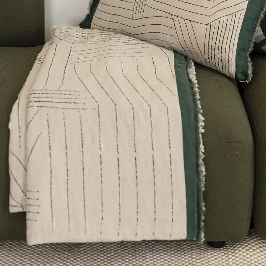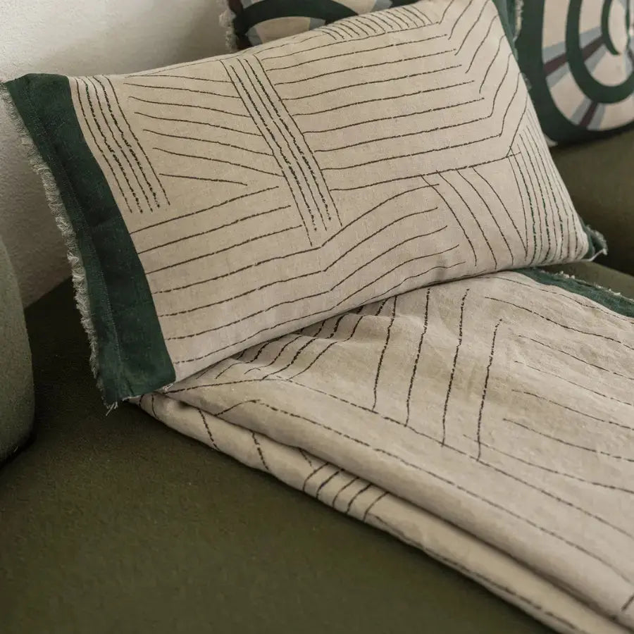 Édredon en lin graphique : une présence contemporaine au bout du lit