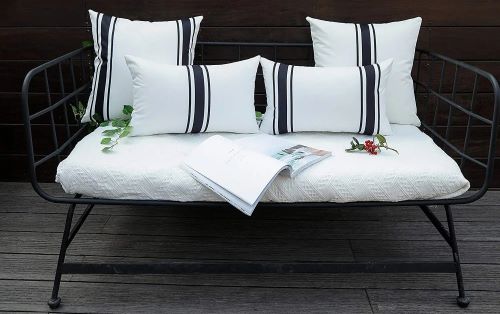Pourquoi ne pas opter pour nos housses de coussins blancs à rayures noires imperméables ?