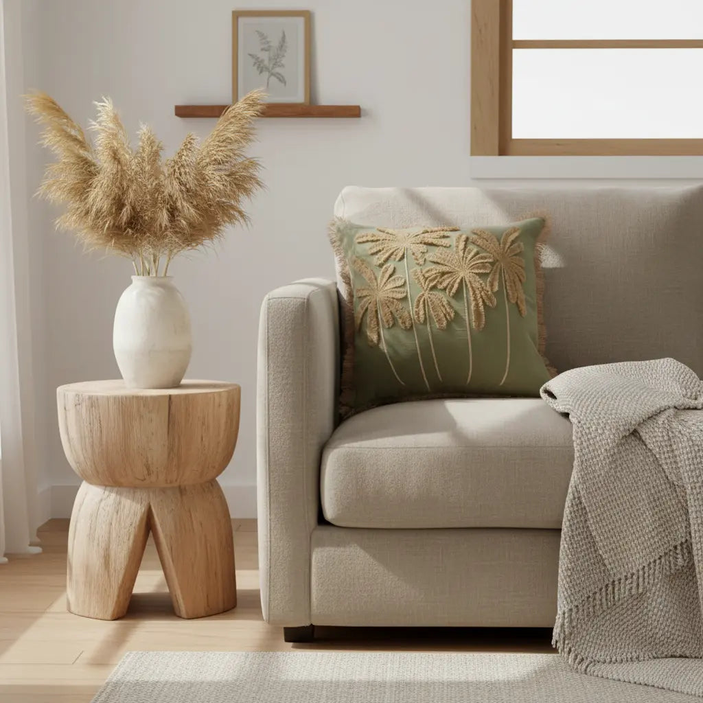Invitez la nature dans votre maison avec la housse de coussin Vert Forêt Tropical Breeze. Son imprimé palmiers et sa teinte vert forêt profonde insufflent une touche d’évasion à votre décoration. Les franges naturelles sur les bords ajoutent un charme artisanal irrésistible, parfait pour ceux qui recherchent une atmosphère exotique et apaisante, sans quitter le confort de leur salon.