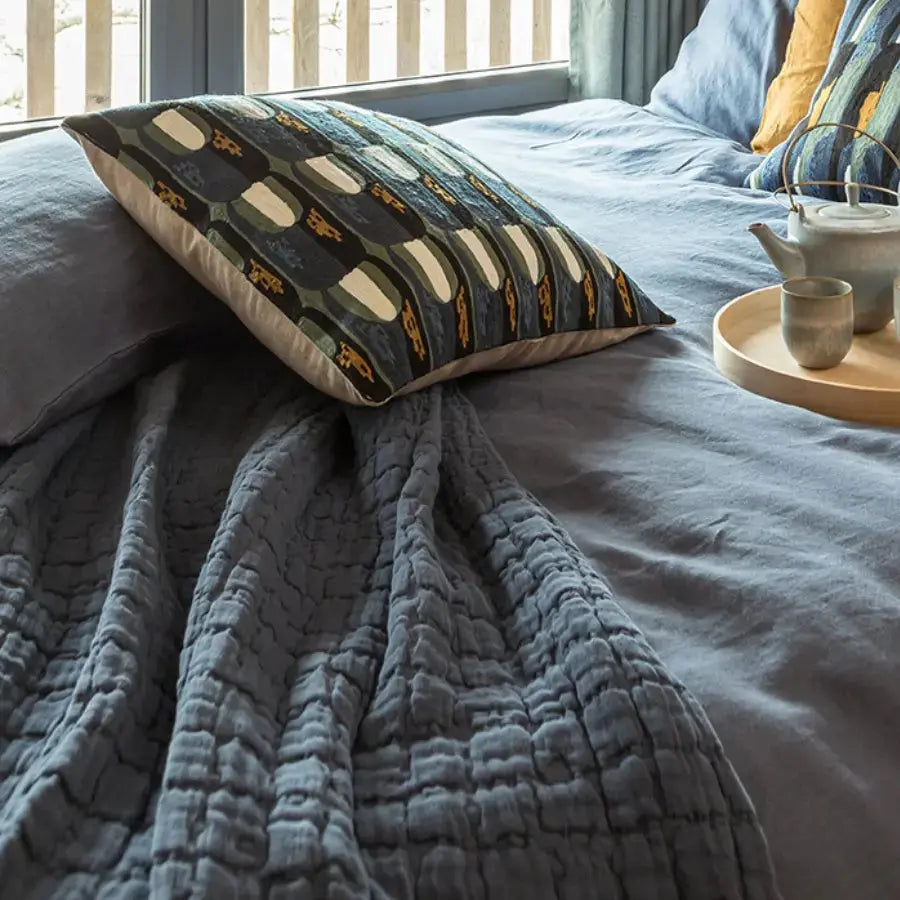 Le plaid coton Swami Tempête, confectionné en 100% coton avec traitement stonewashed, offre un toucher exceptionnellement doux et agréable. Sa taille 130x200 cm le rend parfait pour se lover seul ou à deux sur le canapé, ou pour apporter une touche décorative à votre lit.