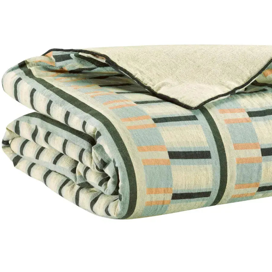 Plaid imprimé en lin recyclé : un graphisme inspiré de l’architecture